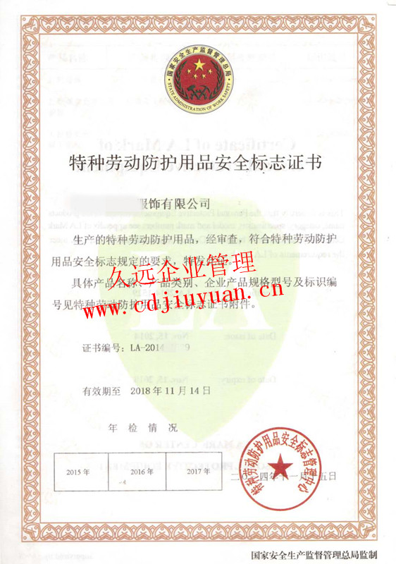 環境管理體系認證證書  勞動防護用品安全標志認證證書