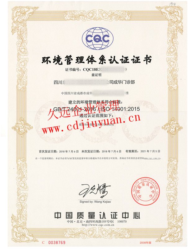 職業健康安全管理體系認證證書  環境管理體系認證證書