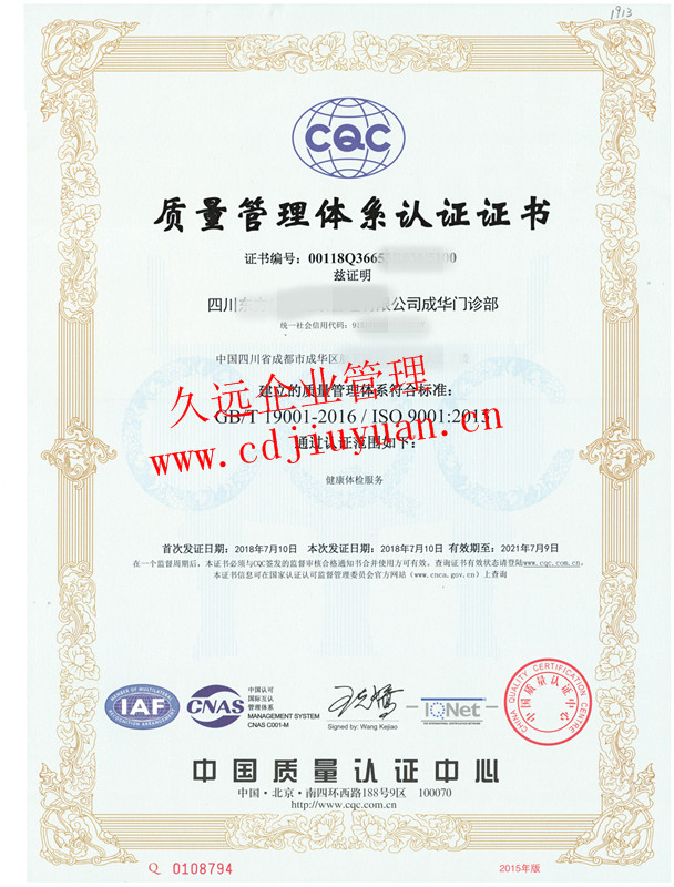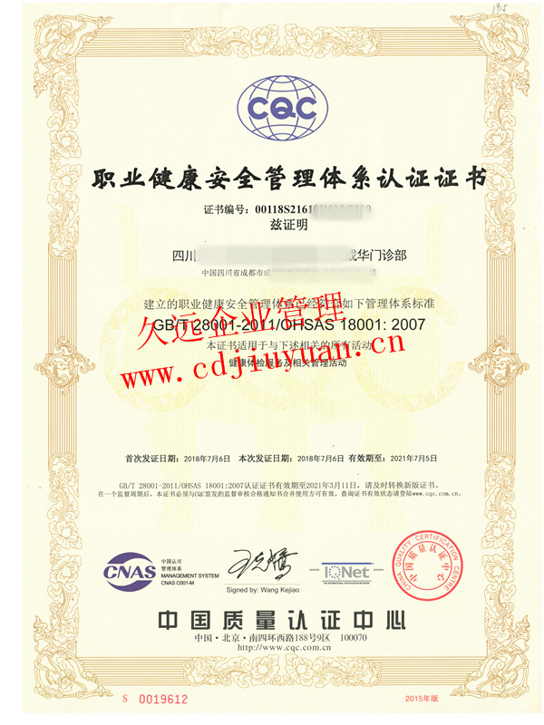 質量管理體系認證證書  職業健康安全管理體系認證證書