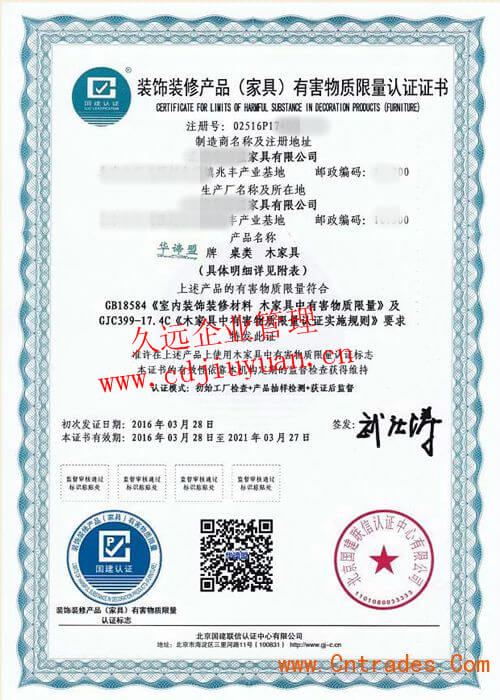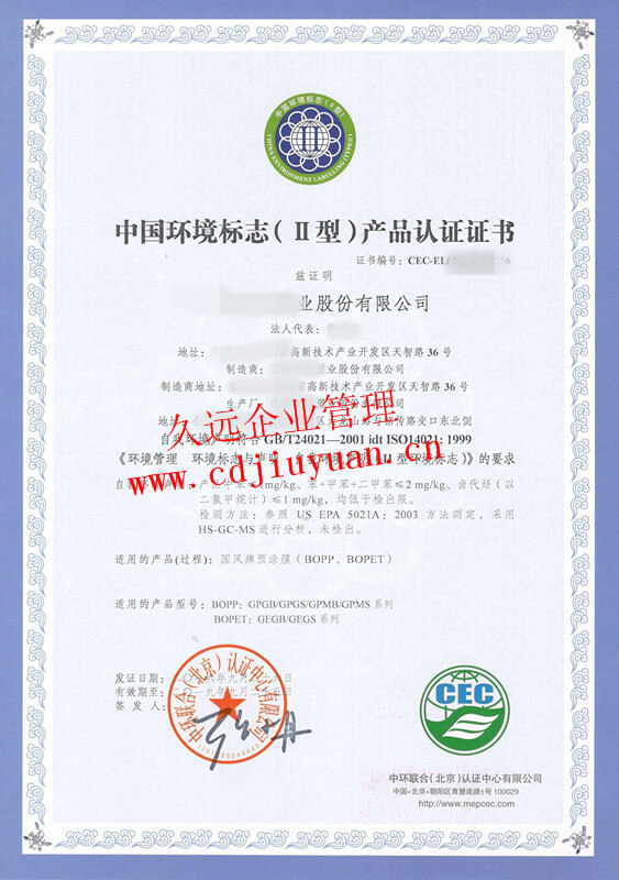 中國環境標志產品認證證書(十環認證)  中國環境標志產品II型認證證書(十環II型)