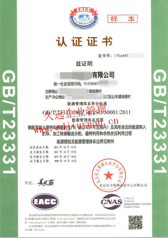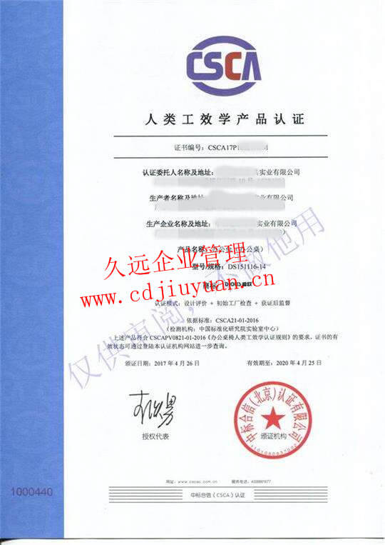 ISO50001能源管理體系認證證書  人類工效學產品認證證書