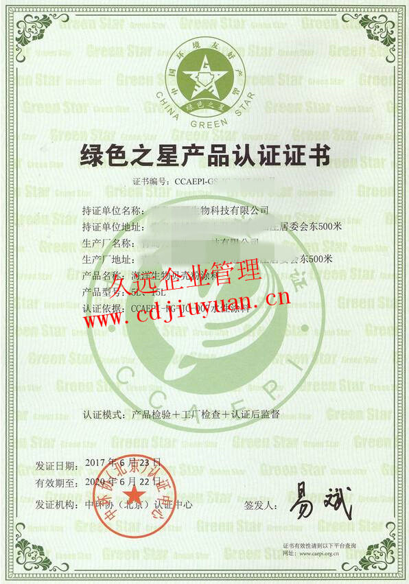 綠色之星產品認證證書  ISO50001能源管理體系認證證書