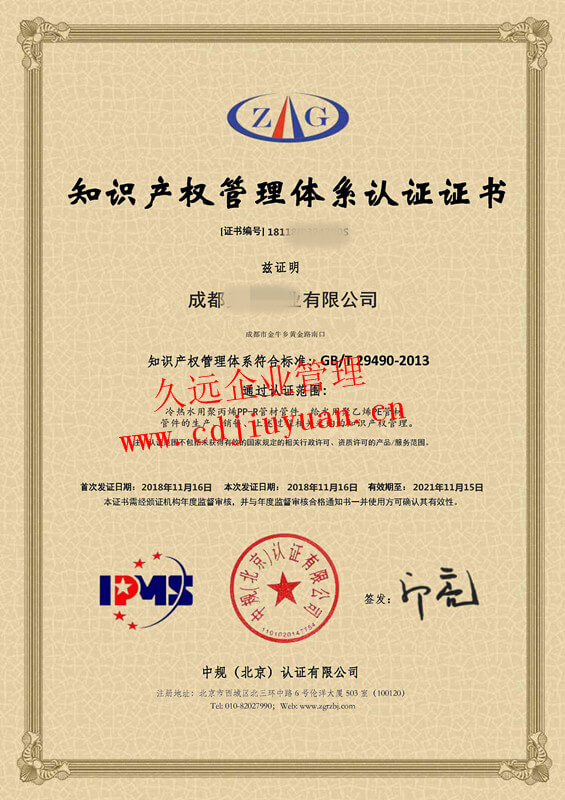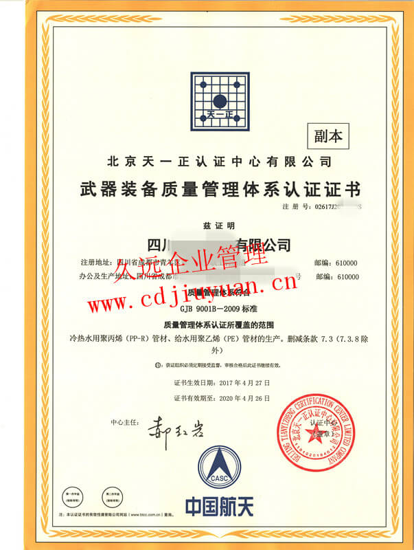 武器裝備質量管理體系認證證書  知識產權管理體系認證證書
