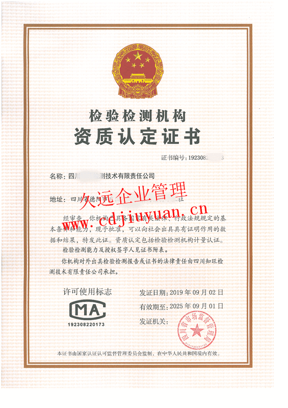 中國CCC認證證書  檢驗檢測機構資質認定證書(CMA)
