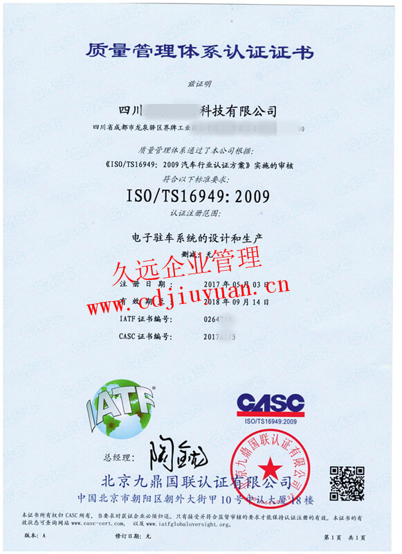 IATF16949汽車質量管理體系認證證書  AAA級企業信用等級證書